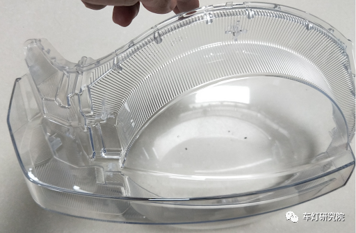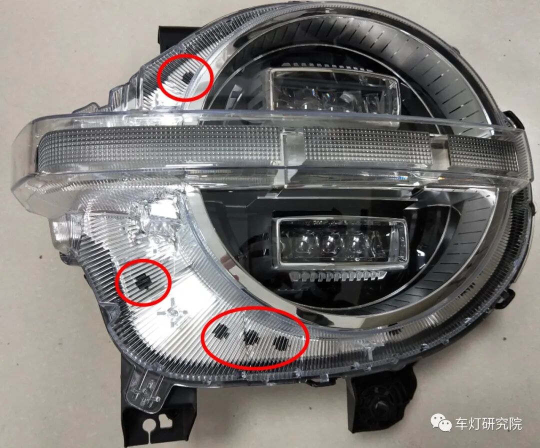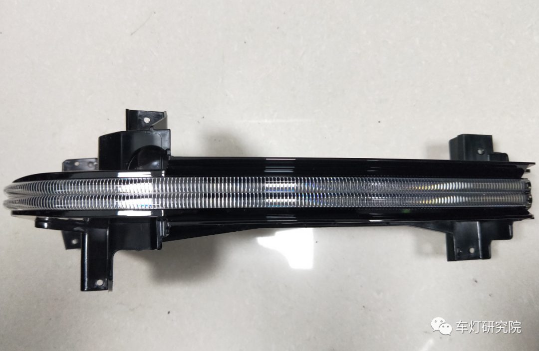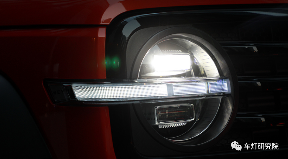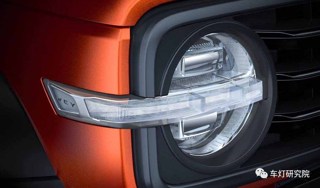 国产车一直不缺SUV,可对硬派越野,大家印象中可能还只有极少数车企愿意尝试,比如北汽的BJ40,BJ80等。但自从长城发布了坦克300,国产硬派越野迅速吸引了一票眼球,火爆程度令人佩服。从前脸造型来看,车身致敬了经典的方圆设计,方形logo和方形格栅,搭配圆形大灯。但致敬经典却又有自己的血液。尾灯两个方形竖条设计,配合圆形大备胎,也是很气派了。在日行灯的上下方各摆了一个长方形透镜,上方是近光透镜,下方的远光透镜,中间厚壁作为日行,转向和位置灯功能三合一。三维立体灯罩凸显肌肉感,充满力量,中间的横条日行灯特征拉伸车身宽度的视感,将横条中网一直视觉延伸到车身侧面的翼子板;整体彰显整车超宽超大的压迫感、硬气感。另外远角配有WEY的logo,灯内镀铝的装饰框还加了一圈小条纹。长城在车灯细节上也是下了功夫。对面罩再做进一步拆解,面罩单色注塑,其中凸出来的“腰线”设计还是非常少见的,目的是配合凸出日行灯光导结构,彰显立体感。主装饰框乍一看是全镀铝工艺,实际拆解后才发现是局部镀铝,并且镀铝边界平整,可见灯厂的工艺过程能力还是非常不错的。另外大灯面罩,厚壁和下方光导这样一层一层的叠加装配关系,对零件尺寸也是一种考验,稍有不慎,就会厚壁在腰线偏上或者偏下位置,在加上实车Z向的振动......这样大胆的设计可见灯厂对自己的过程能力非常自信。接下来这个东西厉害了,日行灯厚壁光导,首先尺寸非常的“扎实”,而且目视起来非常的透亮,我们特定放在黑色背景下拍了张照片,凸出通透厚壁件的晶莹剔透。可见长城可真的是“厚壁狂魔”。