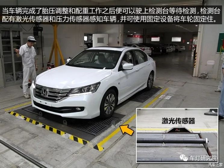 除了线上的检测和调整,广汽本田还会定期进行车辆的质检,其中将会在灯光实验室的暗房中对车辆的灯光进行专门的检验。