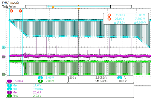 #简介# 随着LED技术在汽车车灯中的广泛应用,电子产品的比例越来越高。由于LED可以实现更多的功能,因此基于人类情感的图像自动化和高度智能等技术每天都在如雨后春笋般涌现。从概念的角度来看,与LED技术集成的汽车灯不仅考虑了LED的使用寿命及其可靠性,还考虑了LED驱动器的使用寿命及其可靠性。长时间照明后,诸如色散或均匀性恶化等缺陷总是会出现。为了消除这些缺陷,PWM技术被认为是这方面的最佳方法。本文介绍了基于PWM调光模式的白光LED驱动器设计,使读者对PWM技术有更好的了解。 01# LED驱动器 一般LED驱动器的P原则要求: 1)高效电源,电源需要是恒流LED驱动器,具有更高的精度,简单的i集成电路结构,更小的尺寸,更大的容量和更高的能量对流。 2)F或多功能结构,LED驱动器需要具有具有更好线性度的调光功能。 3)高效电源,电源需要是恒流LED驱动器,具有更高的精度,简单的i集成电路结构,更小的尺寸,更大的容量和更高的能量对流。 02# PWM调光原理 由于亮度和占空比之间的线性度极佳,如果我们输入恒定的占空比,可以保证LED颜色和亮度的稳定性,这是PWM调光技术的突出优势。 PWM 调光是通过方波通过调整正向接通时间的正向导通 LED 实现的。从理论上讲,如果我们使用LED调光技术,LED总是会出现闪烁现象,但是,由于人眼对闪烁现象的敏感性差,也就是说,如果闪烁频率高于100Hz,我们只能看到除闪烁现象以外的平均亮度。除此之外,对于频率高于100 Hz的闪烁现象,对亮度的感知总是累积效应,也就是说,在一个周期内,如果接通时间的比例更大,人眼会感知到LED的亮度越高。遵循这一原理,如果我们在一个周期内调整LED输入电流的持续时间,即占空比,就可以实现LED亮度的调整。 实现LED调光技术的具体方法是引入MOS晶体管或直接驱动LED,通过设置不同的占空比来改变亮度。 图1. 调光原理图解 表1. 调光的不同方式及优缺点 03# PWM驱动的典型白光LED电路 1)PWM直接驱动 如图2所示,PWM信号直接驱动LED D2。如果PWM信号直接来自微控制器端子,由于电流输入的容量相对较低(总是几十mA),电路只能驱动功率较小的LED,如位置灯或内部照明或环境灯。如果电路使用中等功率LED,则PWM的信号可以通过线性电路获得。在此背景下,由于PWM精度差,将出现不稳定的彩色图像和均匀性。 图2 PWM直接驱动LED 2)通过晶体管(或MOS)驱动 如图3所示,与直接连接LED的电路相比,通过引入MOS对LED亮度的调节范围会更宽。在电路中,MOS晶体管的位置始终位于LED的负极,正端始终与稳定的电源连接。这种方式始终在电路与多串联的情况下使用,以确保所有LED的一致性。本电路中,PWM信号可以来自外部环境(例如,通过改变环境亮度来调节汽车灯的亮度),或者引入开关电源或线性电源,以相对较高的精度保证颜色的稳定性和均匀性。 图3 MOS晶体管驱动 3)单片机调光 如图4所示,亮度调节直接通过DC-DC开关模式电源或微控制器实现。首先,microcontroller和LED之间有很多连接方式,通过仅使用一个输出通道来控制所有LED,或者通过使用每个通道来控制每个串联LED(对于具有许多串联LED的TOP结构)。LED调节器在整个电路中起到功率补偿的作用,保证LED驱动器和调节器之间的电压可以等于LED的工作电压。 图4 微控制器驱动 04# 白光LED驱动器实例 1)设计要求及主要组织 在这个项目中,需要实现三个功能(位置,DRL和方向指示器)。其中位置和DRL通过双功能和单光源实现,这是一种PWM调光技术,以确保亮度的稳定性和相关色温满足5500+/-100k的要求。 图5 DRL/位置示意图 2)LED Micro-控制器 为了满足上述要求,我们选择MCP19114/5作为微控制器,这是一款数字增强型功率模拟器控制器,具有电压加速,电压降低,加速度降低和SEPIC等多TOP模式,内部时钟可以达到8M Hz,PWM可以保证+/-1%的精度。 3)电路概念及原理 LED驱动器是整个电路的核心部分。本项目LED驱动器的主要功能包括:与车辆输出信号匹配、逻辑控制三大功能、PWM信号及输出、热管理、电子磁兼容管理等,避免微控制器过热,电路可实现LED在150°C环境温度下自动关断。 图6 LED驱动板和LED板原理图 05# 原型的M制造和测试 1)LED驱动器制作 在综合了LED驱动器的概念要求和设置参数后,我们研究了集成电路并制造了以下原型。PCB的布局由两层实现。在PCB布局后完成仿真。我们在 LED驱动板上增加了保护屏蔽,以增强抗干扰等级。如图7所示。 图7 发光二极管驱动器示例 2)基于PWM频率的调试 在正常连接下,测试DRL在工作时的工作频率,测试结果显示频率为300KHz,符合预设结果。 图8 PWM调试频率 3)不同温度和电压下的C测量 根据测试条件,在-40°c、23°c、85°c和9V、12V、14V和16V的电压条件下进行电流测试,表明所有LED电流的电流可以保持在300Ma,并且没有闪烁现象或异常关断,表明恒定输出可以满足规格。 4)电磁兼容测试结果 根据测试条件,在-40°c、23°c、85°c和9V、12V、14V和16V的电压条件下进行电流测试,表明所有LED电流的电流可以保持在300Ma,并且没有闪烁现象或异常关断,表明恒定输出可以满足规格。 #结论# 本项目设计了基于MCP19114/5的LED驱动电路,实现了DRL/位置/方向指示器的功能,并完成了样机。测试结果显示,LED驱动器可以正常工作。 文章转自 公众号 IFAL