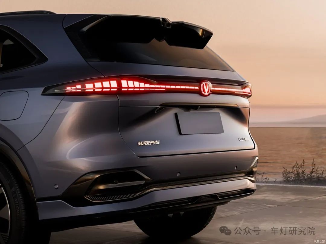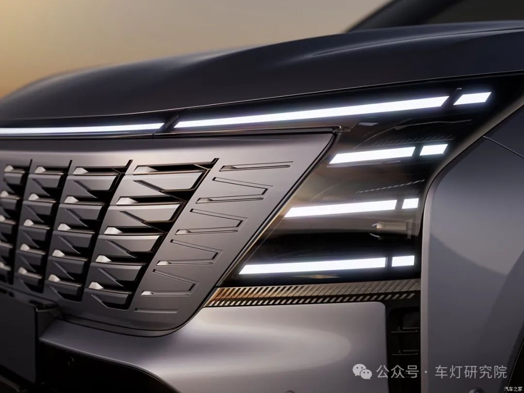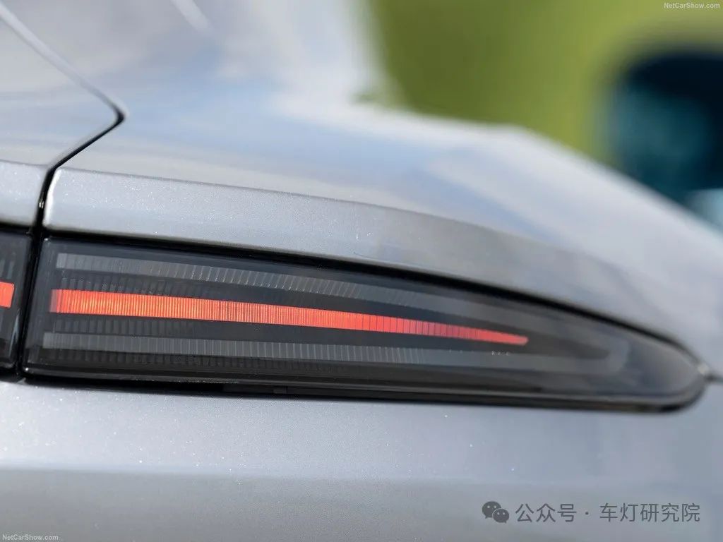 :大灯内部向保险杠延伸的水波纹设计,展现出独特的创意。后部的灯带以渐变的曲线呈现,流畅而富有动感,形成城市夜景中的一道亮丽风景线。灯带下方的精致细节和贯穿镀铬饰条,犹如广场上排列整齐的扇形立柱,巧妙地将都市美学融入车辆设计之中。