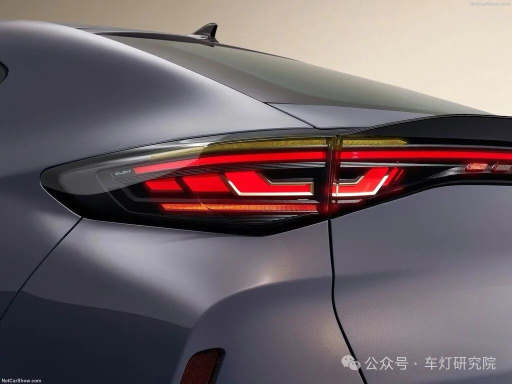 车辆的前后灯组巧妙地展现了城市的活力与魅力。前灯设计犹如穿梭在隧道中闪掠而过的灯带,捕捉了城市夜晚的动感与速度。尾灯则如同岸边的建筑与水面上的倒影,以一种静谧而深邃的方式,映射出城市的宁静与深邃。这样的设计不仅增强了车辆的识别度,也赋予了它一种独特的城市美学。