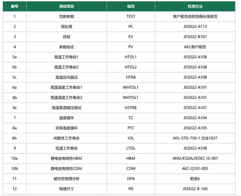 AEC-Q100:针对集成电路(IC)的测试标准,确保IC产品在汽车领域的可靠性。