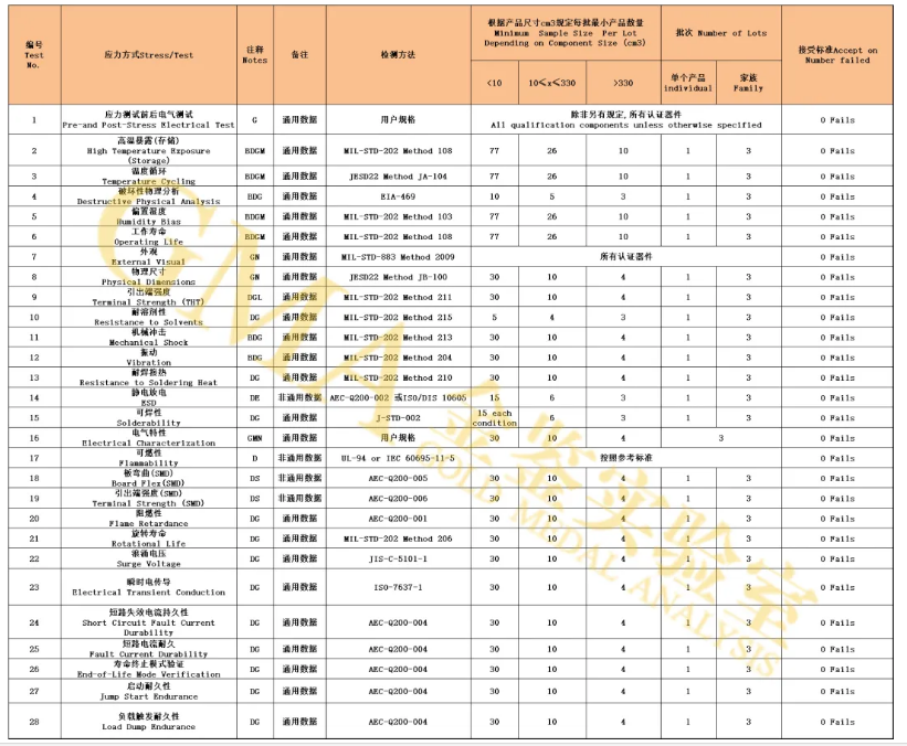 AEC-Q200:针对无源器件,如电阻、电容等,确保它们在汽车系统中的稳定性。