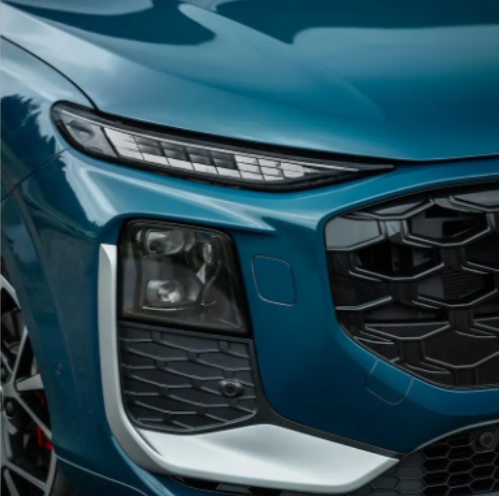 奥迪 Q3 的两级分体式前大灯设计非常突出。LED 日间行车灯和指示灯位于上部,而主大灯模块则布置在下方。这种设计看起来特别现代和紧凑:上部狭窄的灯带突出了车辆的宽度,而下部大面积的前大灯则给人以技术性和功能性的印象。这种设计将细长的车灯模块与车头部分更加紧密地结合在一起,并与宽大的单框格栅和清晰的线条相呼应。数字式日间行车灯还采用了可单独选择的 LED 技术数字灯光特征。这意味着您可以选择不同的日间行车灯设计。
